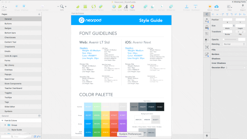 So in the next months as I worked on my own projects and seeing other projects going on at Nearpod, I made it my side project to always update this Style Guide & Component Library Sketch file with newly encountered elements, and establish rules for using certain styles or elements.