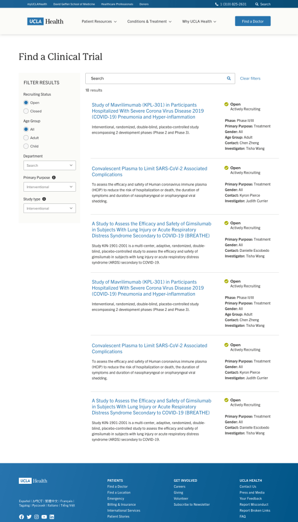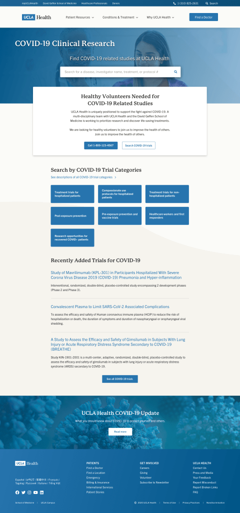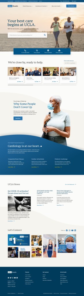 I am continuing to work with UCLA Health to align their content strategy across the website as well as wireframe, user test, oversee final UI for new pages, add to the design system, and communicate with development as they build the pages we’ve designed.