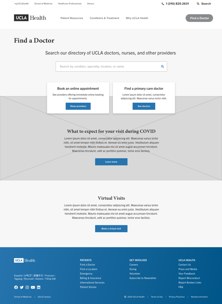 Create an intuitive web experience for prospective patients to find the best care and resume normal life, so that UCLA Health can offer best-in-class lifelong health care.